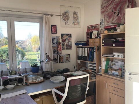 Fußböden: vor allem Fliesen, in zwei Räumen Kork;