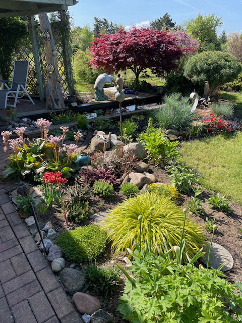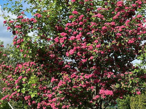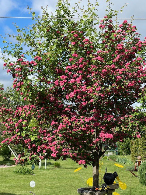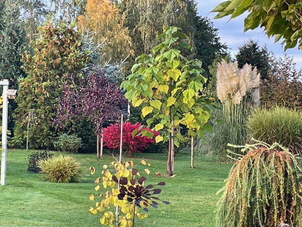 Bepflanzung auf dem Grundstück, z.Bsp. Rosen, Rotdorn, Trompetenbaum, japanischer roter Ahorn, Azaleen, Ginkgo, Rhododendron, Klimabaum...