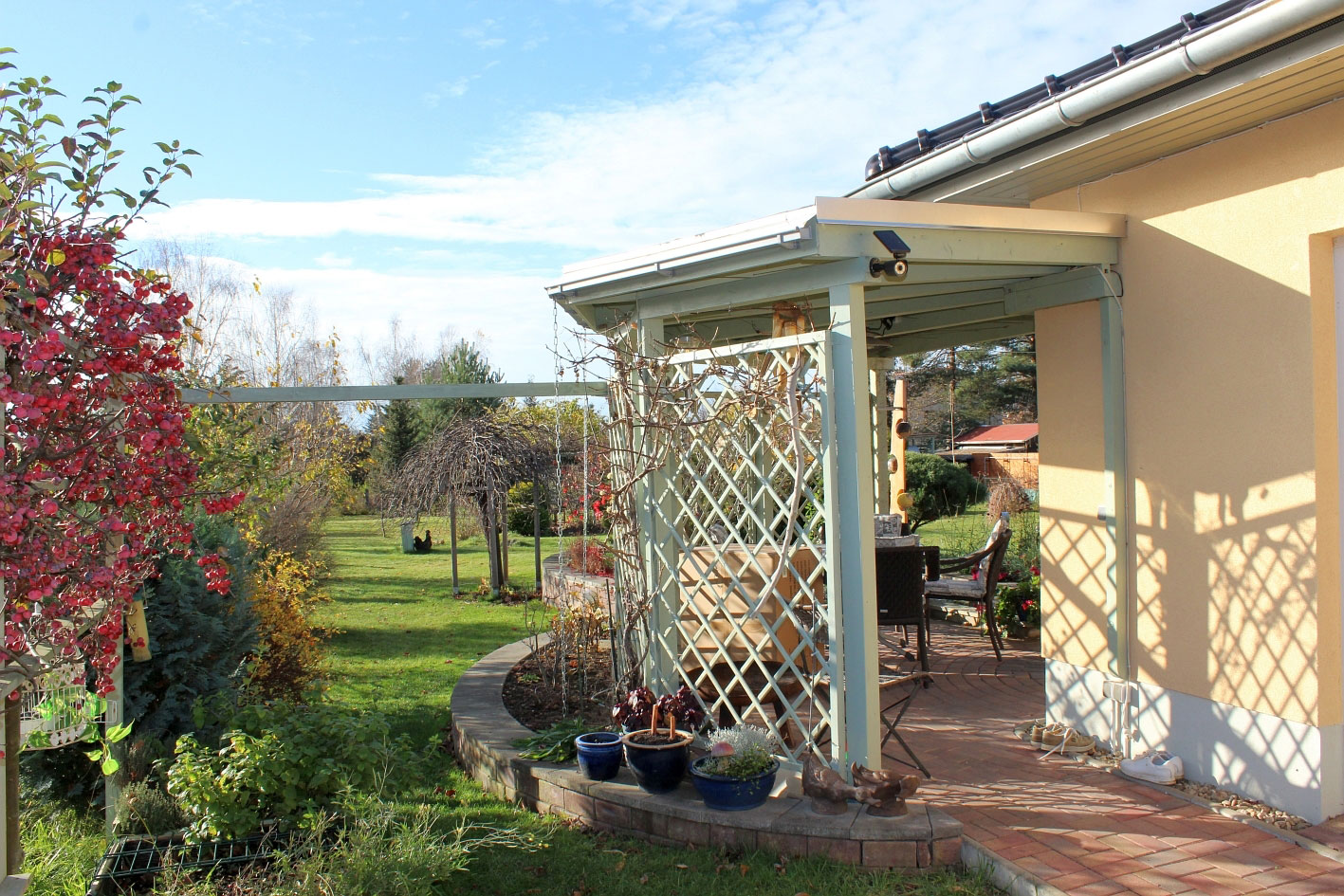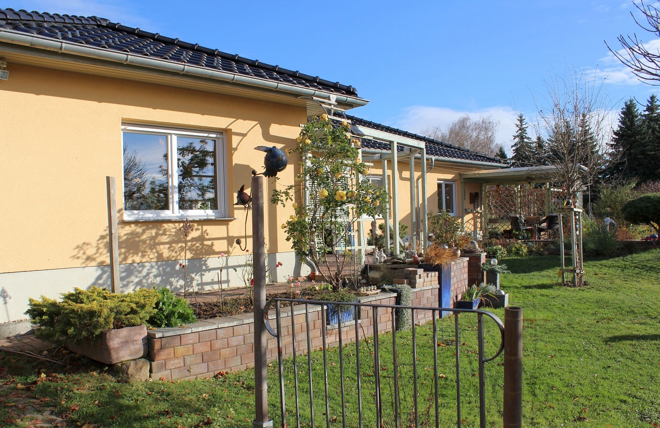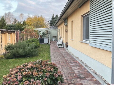 Sie werden nach einer Besichtigung und der Durchsicht aller Unterlagen meine Begeisterung für dieses Haus, dieses Grundstück, diese Lage teilen! In zweiter Reihe absolut ruhig und fast uneinsehbar gelegen, erwartet Sie ein modernes, barrierefreies Einfamilienhaus im Bungalowstil auf einem bezaubernden Grundstück mit idyllischen Sitzgelegenheiten und einer auf den Bildern hoffentlich zu erahnenden Farbenpracht.