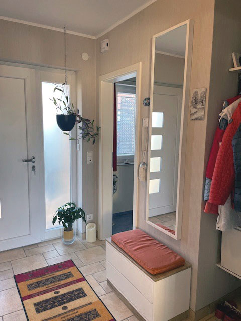 Fenster: Kunststoff, doppelt verglast; Außenrollos (auch an der Hauseingangstür), Schiebeelemente am Schlafzimmerfenster (zusätzlich) sowie an der Terrassentür inkl. Terrassenfenster;