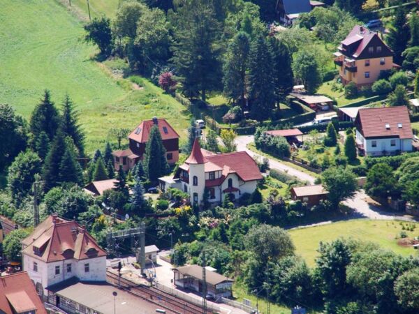 Wer das Haus auf seinem Spaziergang durch Rathen entdeckt, bleibt unwillkürlich stehen und bewundert die verspielte Architektur mit Türmchen, Gauben, Balkonen und Bleiglasfenstern sowie das liebevoll angelegte Grundstück, das in jeder Jahreszeit andere Farbtupfer zu bieten hat.