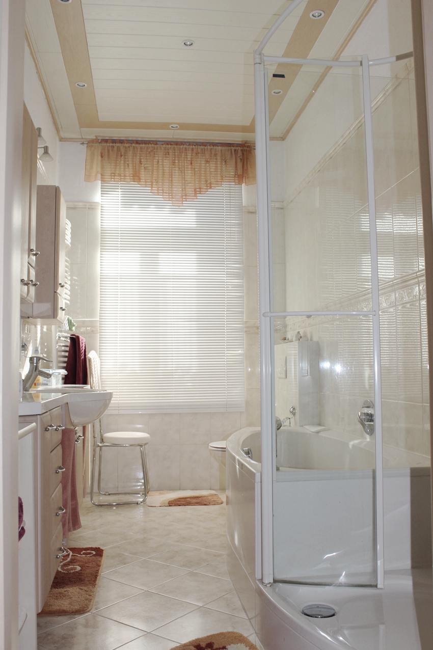 Schallschutzfenster, Fensterrahmen und (Innen-)Türen aus „unverwüstlichem“ Meranti-Holz;