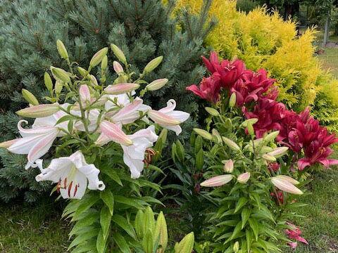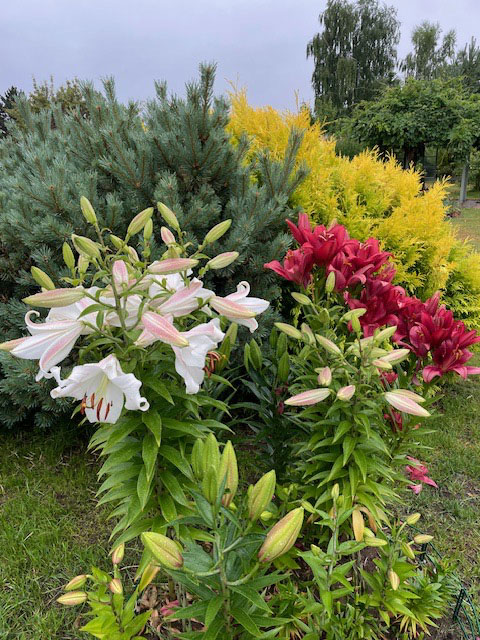 Bepflanzung auf dem Grundstück, z.Bsp. Rosen, Rotdorn, Trompetenbaum, japanischer roter Ahorn, Azaleen, Ginkgo, Rhododendron, Klimabaum...
