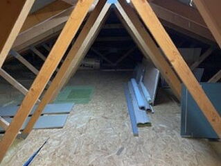 Spitzboden: Kaltdach mit Dämmung zum Erdgeschoss, als Abstellfläche genutzt, teilbegehbar