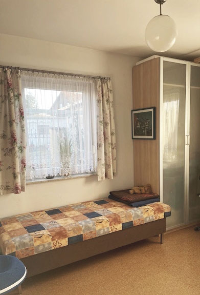 Fußböden: vor allem Fliesen, in zwei Räumen Kork;