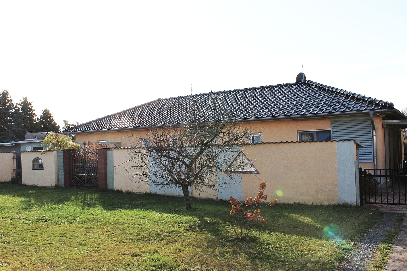 Massivhaus (Planhochlochziegel, 36,50er Außenwände, durchfärbter Putz) auf Bodenplatte; Bungalowstil mit Satteldach; altersgerecht / barrierefrei