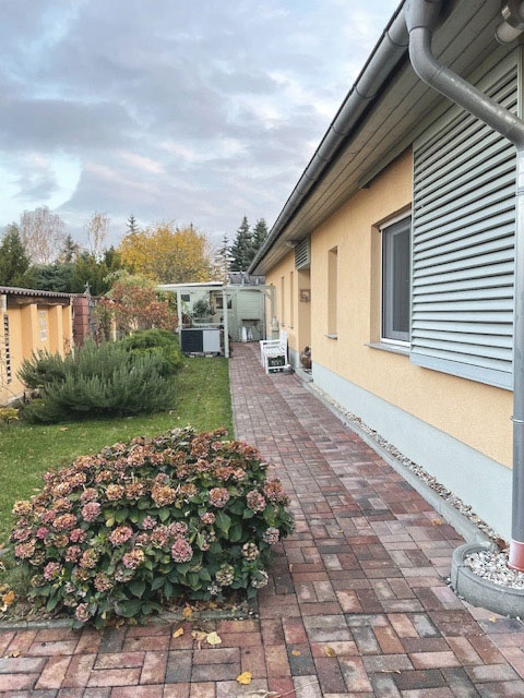 Sie werden nach einer Besichtigung und der Durchsicht aller Unterlagen meine Begeisterung für dieses Haus, dieses Grundstück, diese Lage teilen! In zweiter Reihe absolut ruhig und fast uneinsehbar gelegen, erwartet Sie ein modernes, barrierefreies Einfamilienhaus im Bungalowstil auf einem bezaubernden Grundstück mit idyllischen Sitzgelegenheiten und einer auf den Bildern hoffentlich zu erahnenden Farbenpracht.
